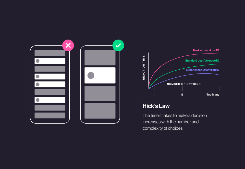의사 결정에 걸리는 시간은 선택지의 개수와 복잡성에 비례하여 증가한다.