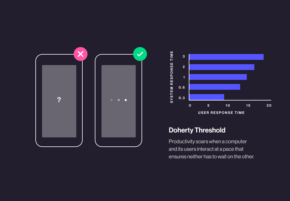 사용자가 컴퓨터의 응답을 기다리지 않을 만큼 빠르게(0.4초 이하) 인터랙션이 이루어지면, 생산성이 급격히 향상된다.
