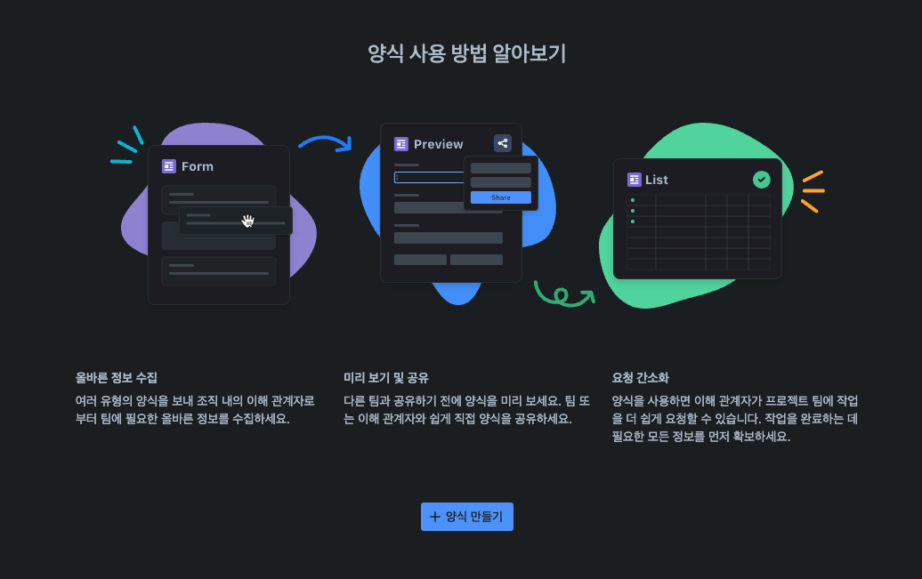 칸반이나 위키와 같은 협업 툴은 꾸미기에 시간을 들이지 않고 내용에 집중하며 문서를 작성하고 쉽게 공유할 수 있게 한다. 문서의 유형에 따라 일정한 양식을 제공할 수 있도록 템플릿 기능을 지원하고 있어서 모든 구성원이 문서를 쉽고 빠르게 작성하고 이해할 수 있다. 그래서 나는 반복적으로 작성되는 문서 유형은 아래와 같이 작성 양식을 만들어 제공한다.